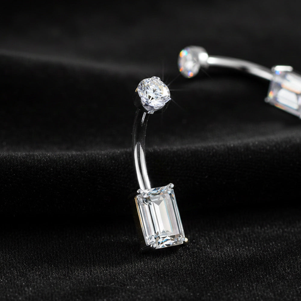 Implant Grade Titanium Mossanite Emerald Cut Sparkle Internally Threaded Belly Button Ring