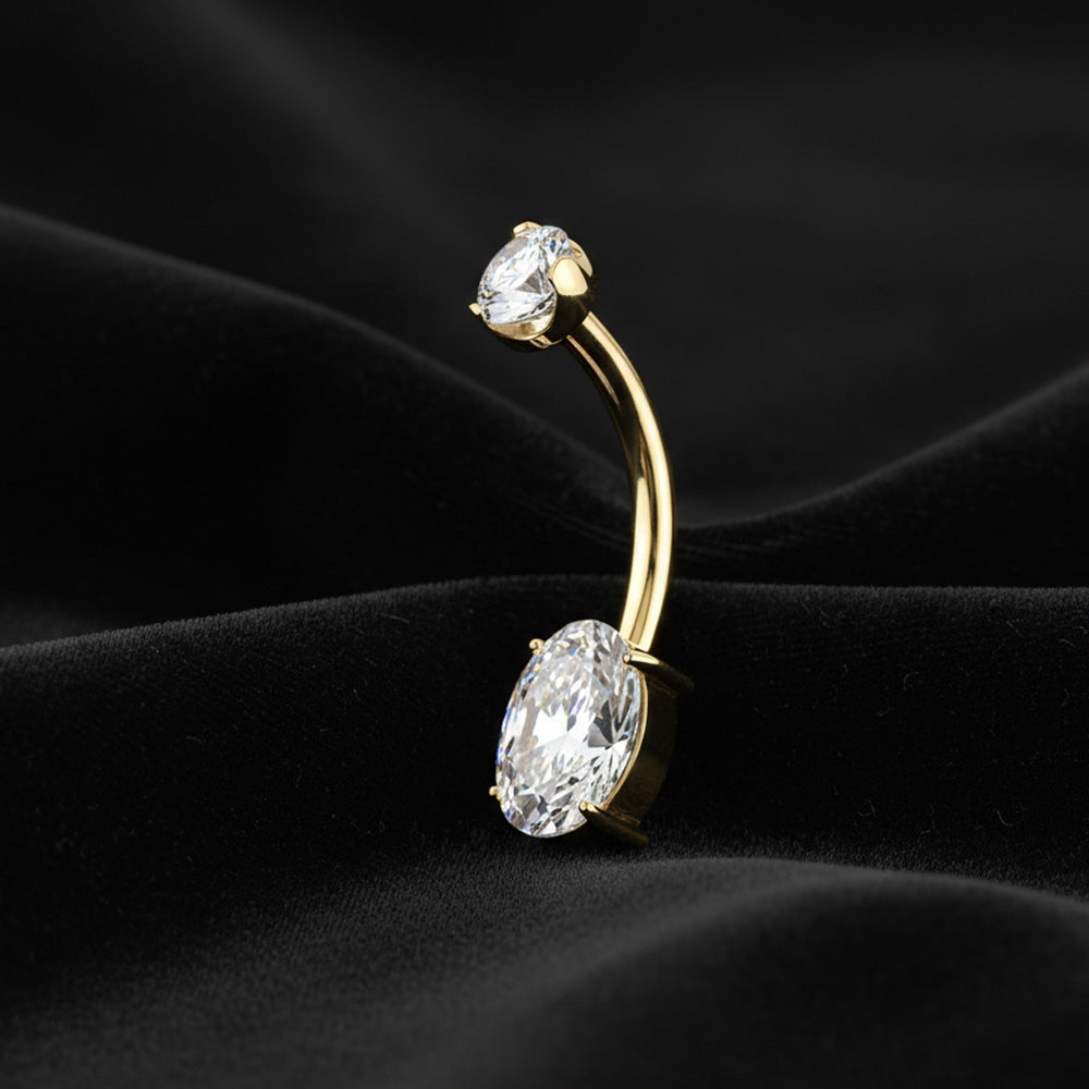 Pure24K Implant Grade Titanium Mossanite Oval Sparkle Internally Threaded Belly Button Ring