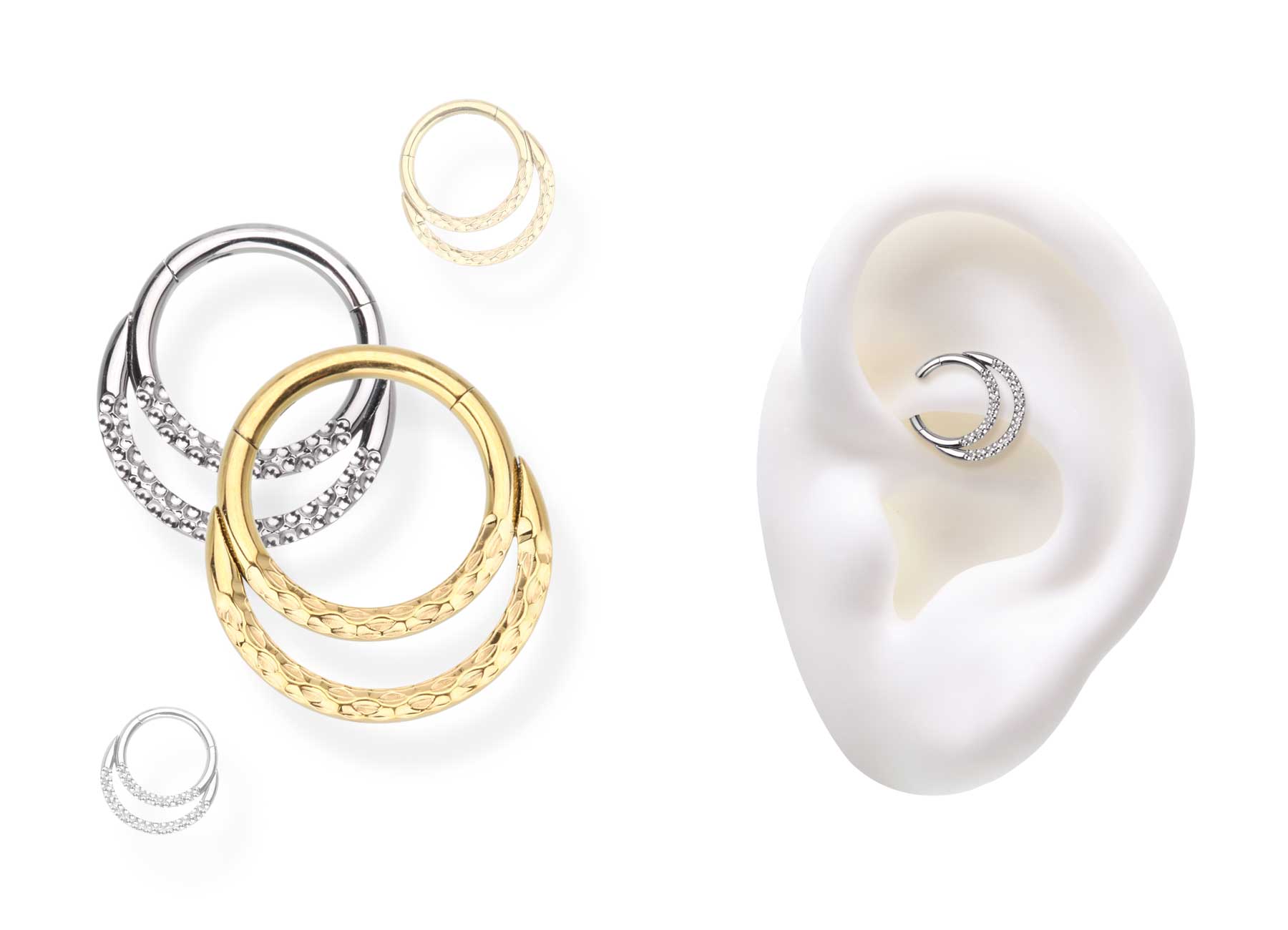 Our hoops come in a variety of sizes and designs, from simple and classic to bold and unique. Our clickers are perfect for those who want an easy-to-wear yet stylish option, making them a popular choice for everyday wear. Lastly, Captive bead rings are a versatile, classic option as well.