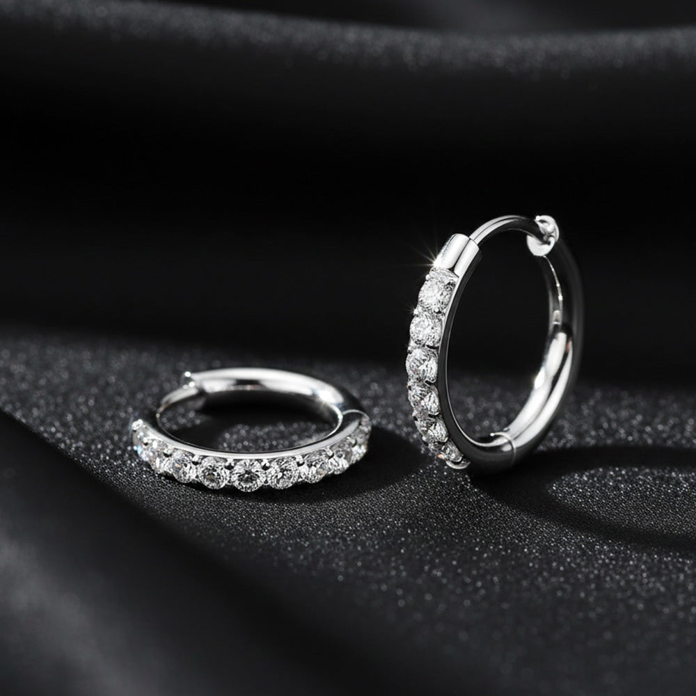 A Pair of Implant Grade Titanium Moissanite Sparkle Huggie Hoop Earring