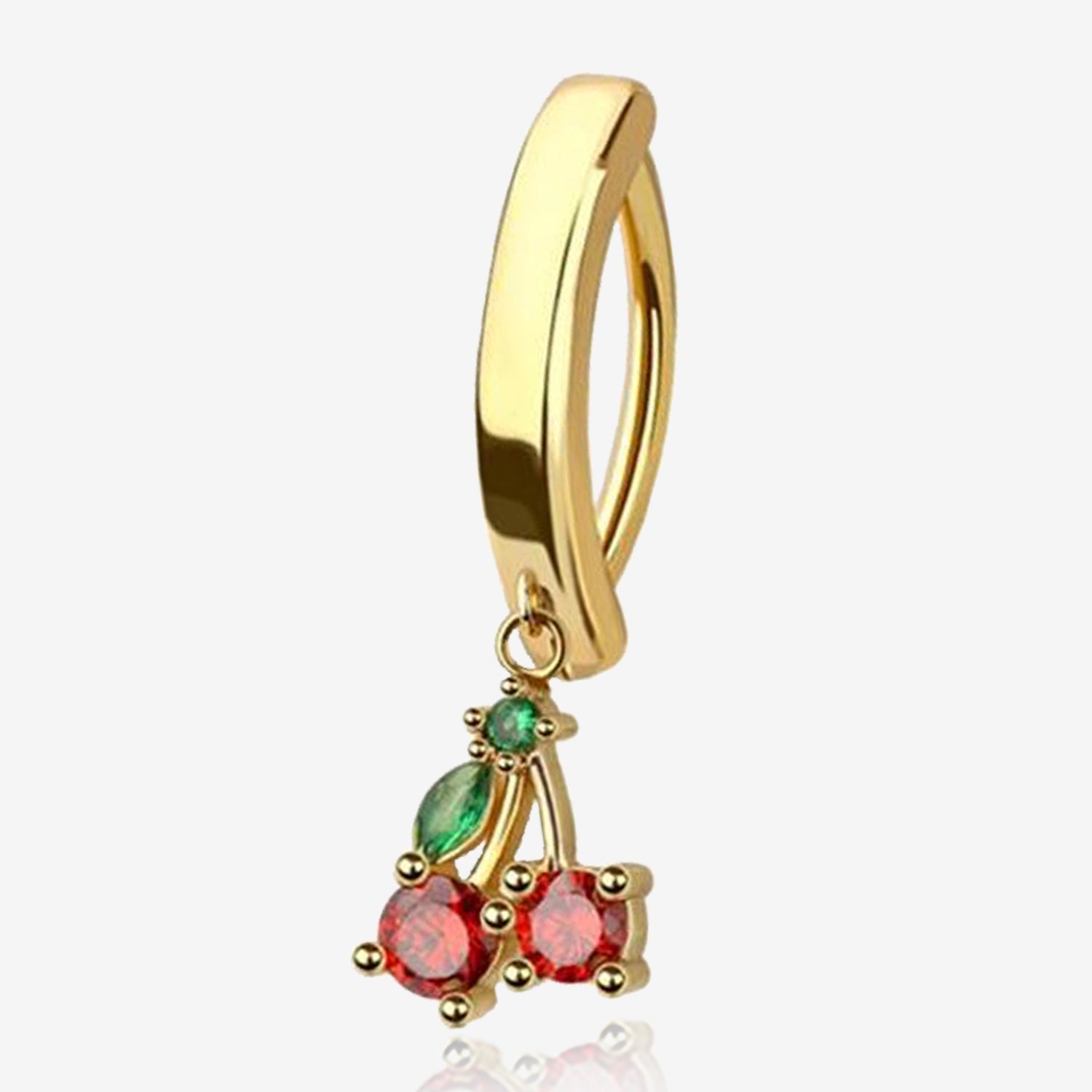 Golden Lucky Cherry Sparkle Dangle Minimalist Curved Bar Belly Clicker