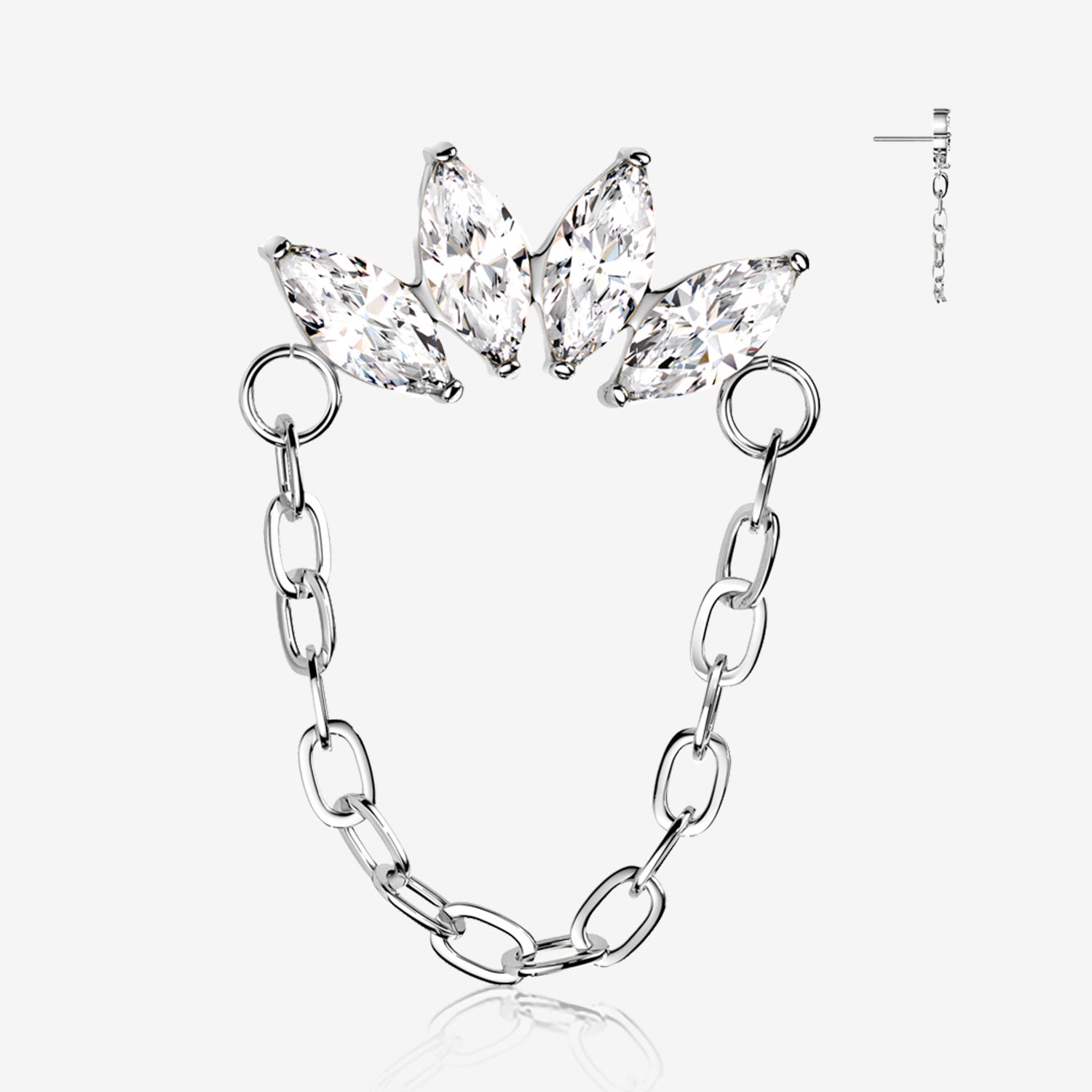 Implant Grade Titanium OneFit Threadless Chained Marquise Sparkle Curve Top Part
