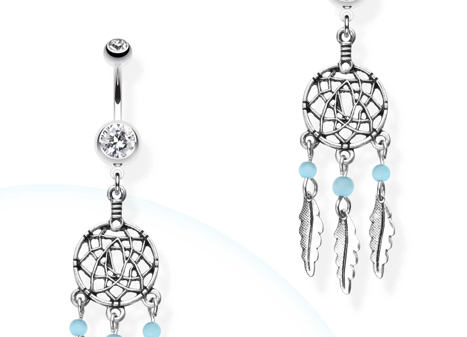 Do you believe in dreamcatchers? Whether you do, or just love the popular Native American cultural design, Our dreamcatcher and feather themed belly button rings will amaze you with the creativity and details. If you're a fan of dreamcatchers and feathers, you've come to the right place.