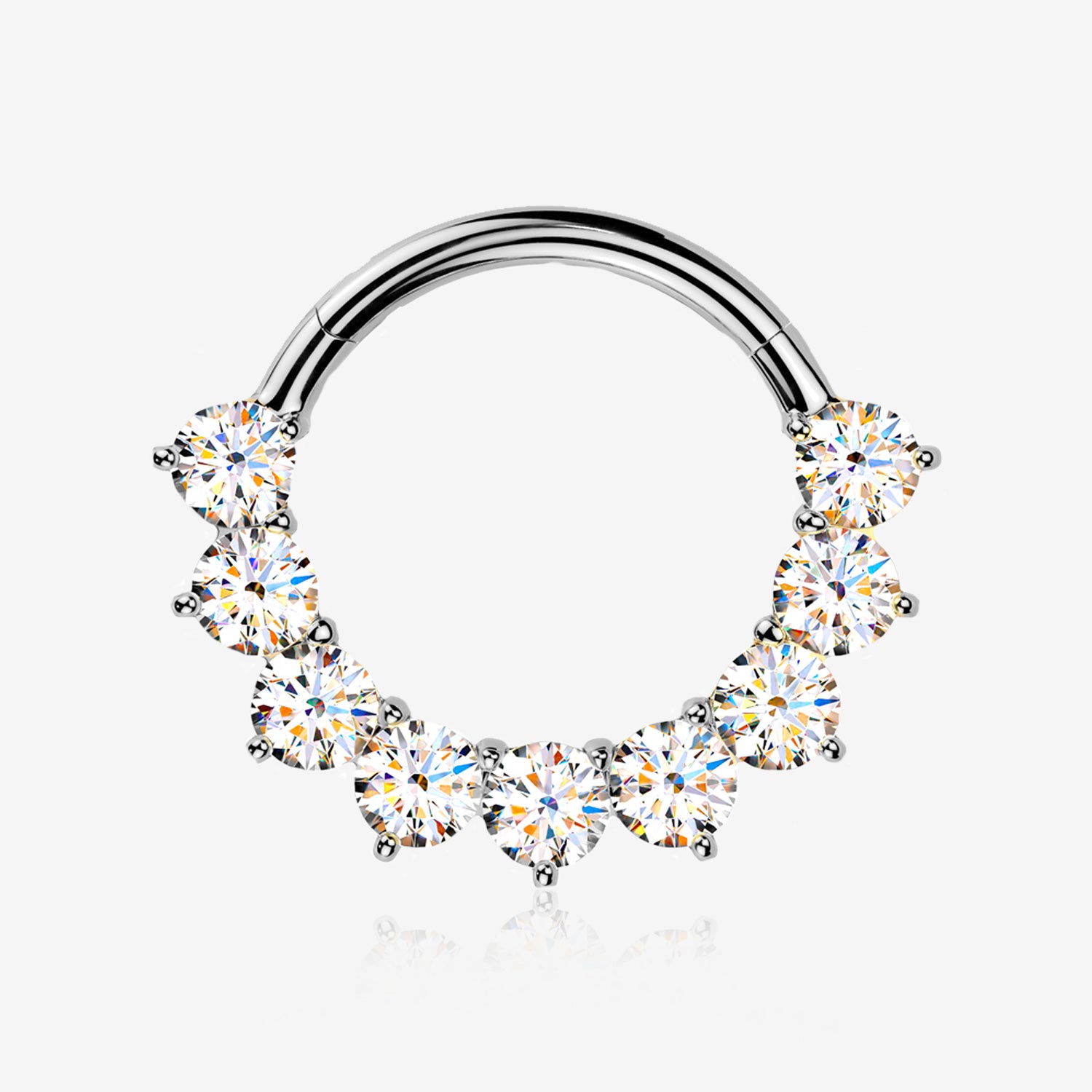 Implant Grade Titanium Moissanite Royal Floral Sparkle Clicker Hoop Ring