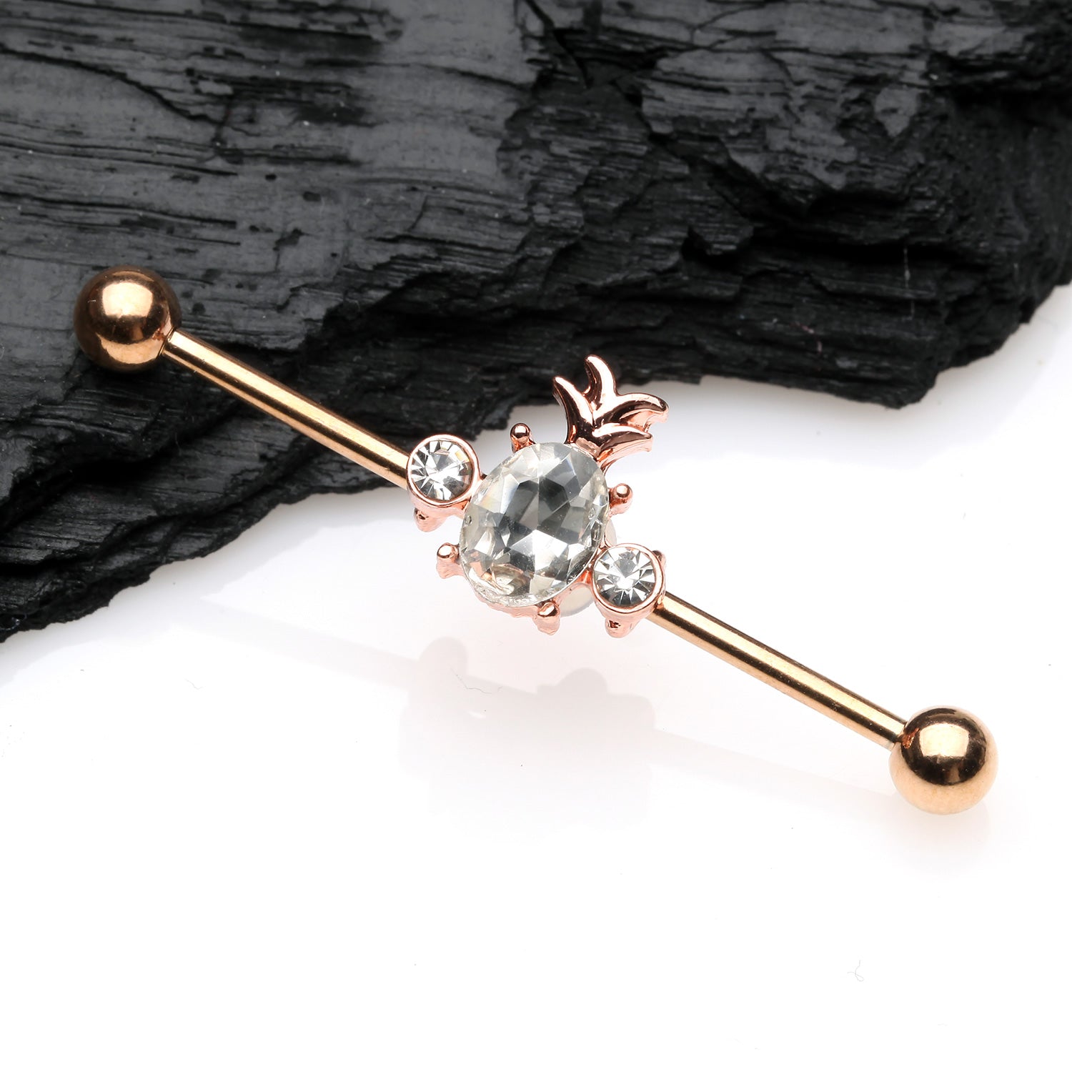 Rose Gold Adorable Pineapple Sparkle Industrial Barbell
