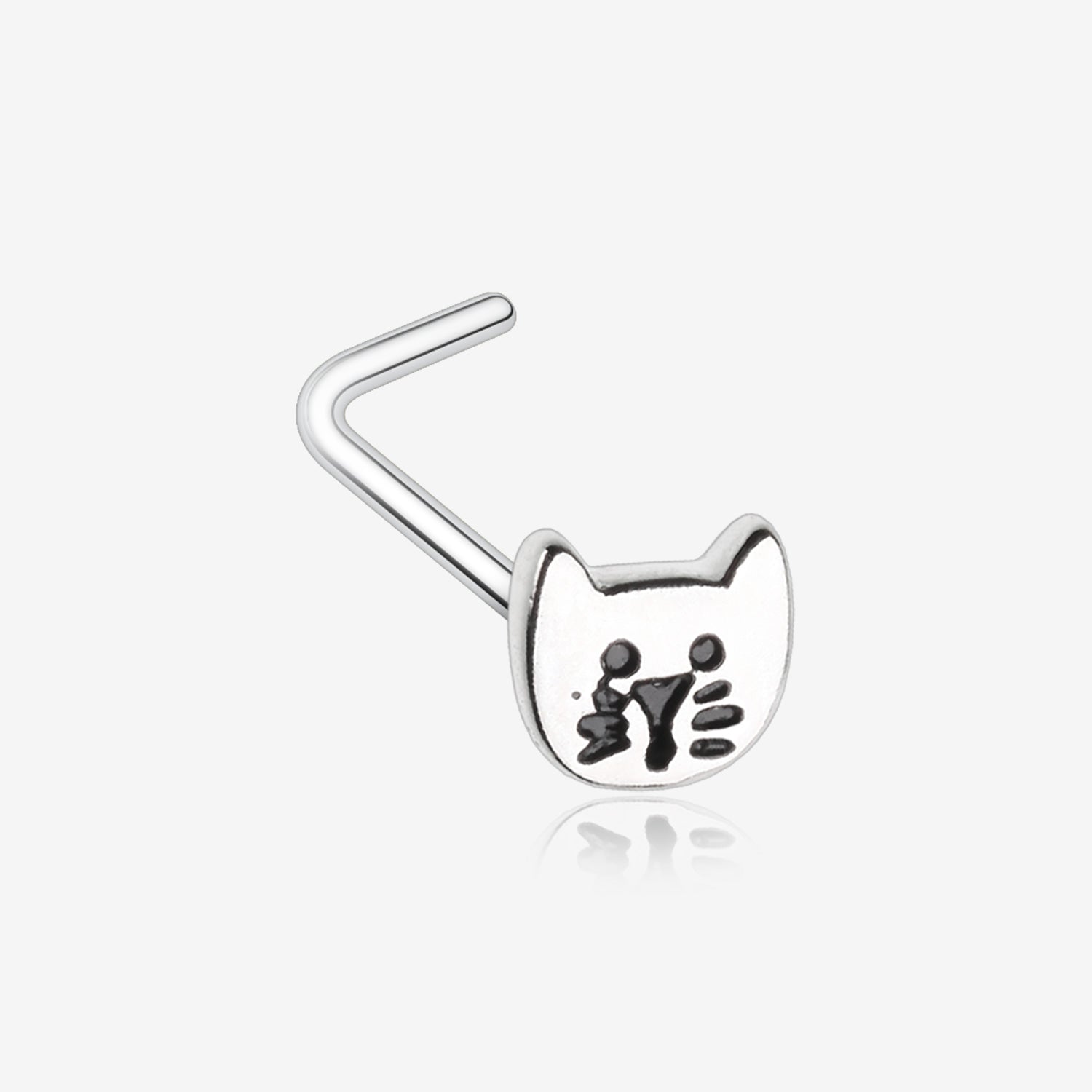 Show off your love for feline friends with the Adorable Kitty Cat L-Shaped Nose Ring. This playful piece features a cute kitty design that adds a fun and charming touch to your everyday style. Its L-shaped form ensures a secure, comfortable fit, making it perfect for those who want to keep their nose jewelry both stylish and snug all day long.