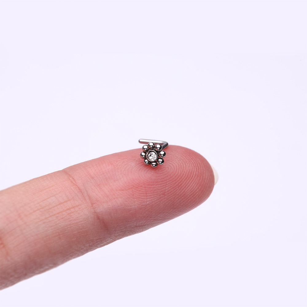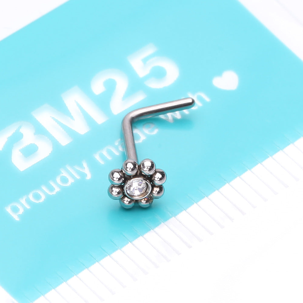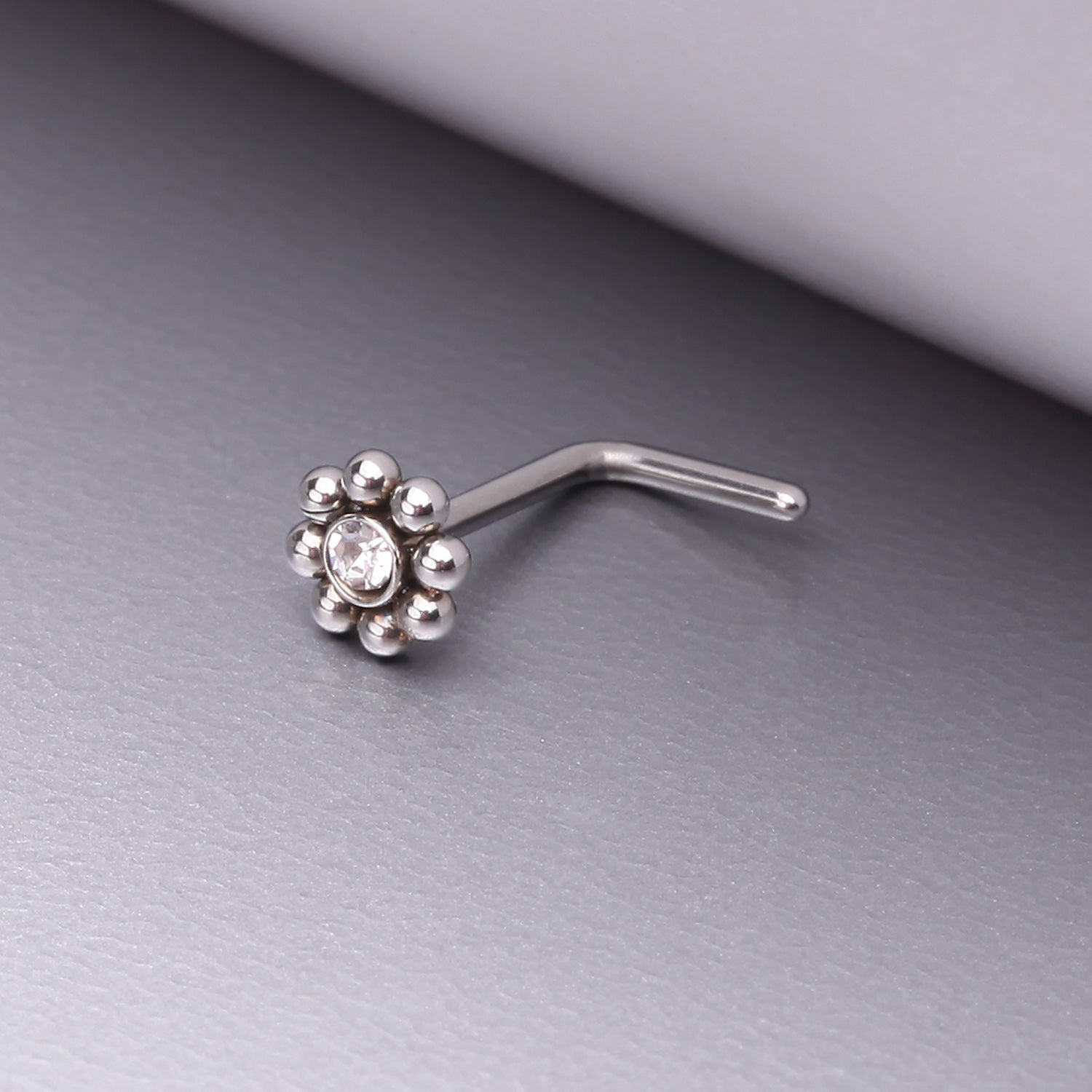 Bali Beads Flower Sparkle Steel L-Shaped Nose Ring