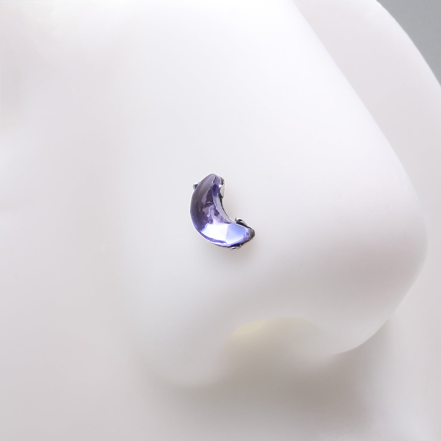 Enhance your unique style with the Crescent Moon Gem Sparkle L-Shaped Nose Ring. Crafted with a beautiful crescent moon design and sparkling gemstone, this nose stud will add a touch of elegance to your piercing.