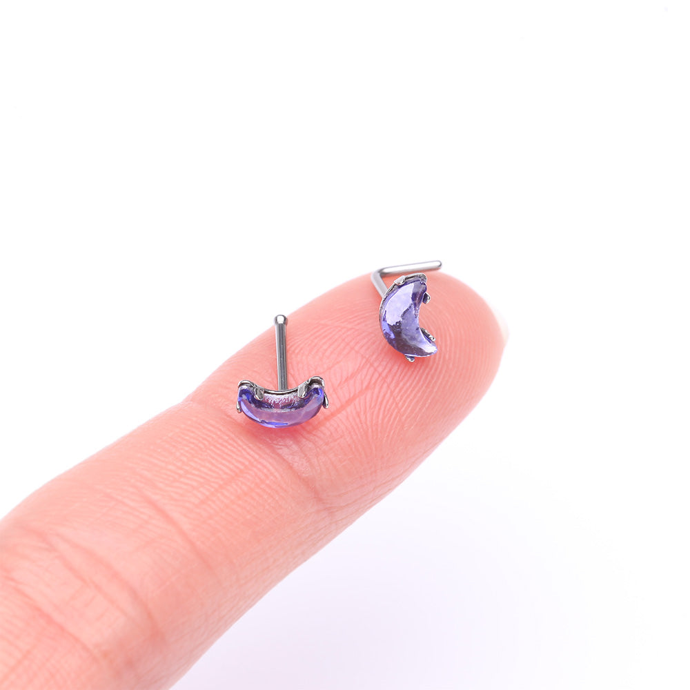 Crescent Moon Gem Sparkle L-Shaped Nose Ring