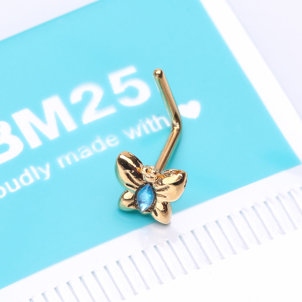 Golden Aqua Butterfly Sparkle L-Shaped Nose Ring