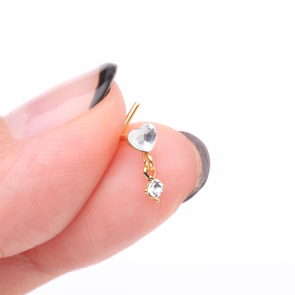 Golden Heart Sparkle Prong Dangle L-Shaped Nose Ring