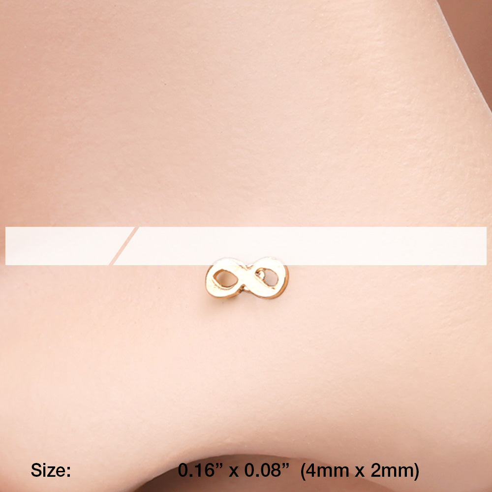Transform your look with our captivating Golden Infinity Loop L-Shaped Nose Ring! Crafted with a sleek, golden infinity loop, this nose ring adds a touch of elegance to any outfit. It's perfect for those looking to make a statement and elevate their style effortlessly.