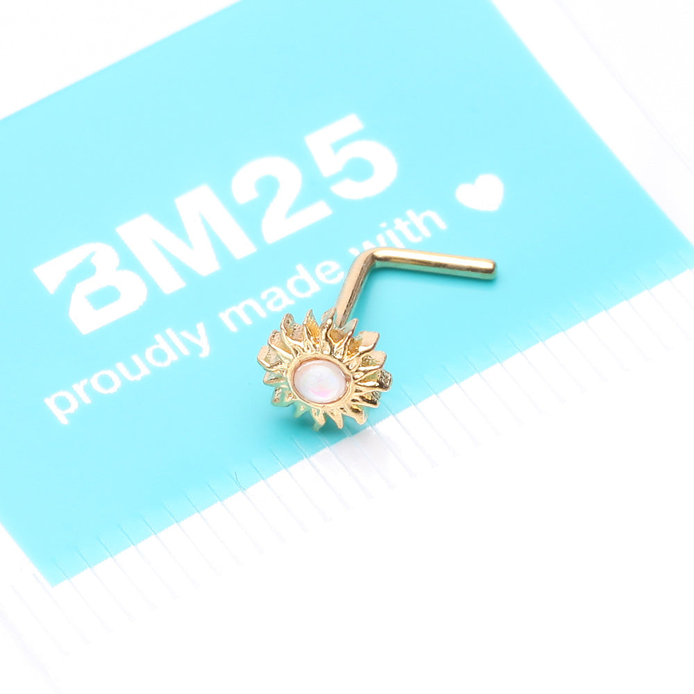 Golden Opalescent Blazing Sun L-Shaped Nose Ring