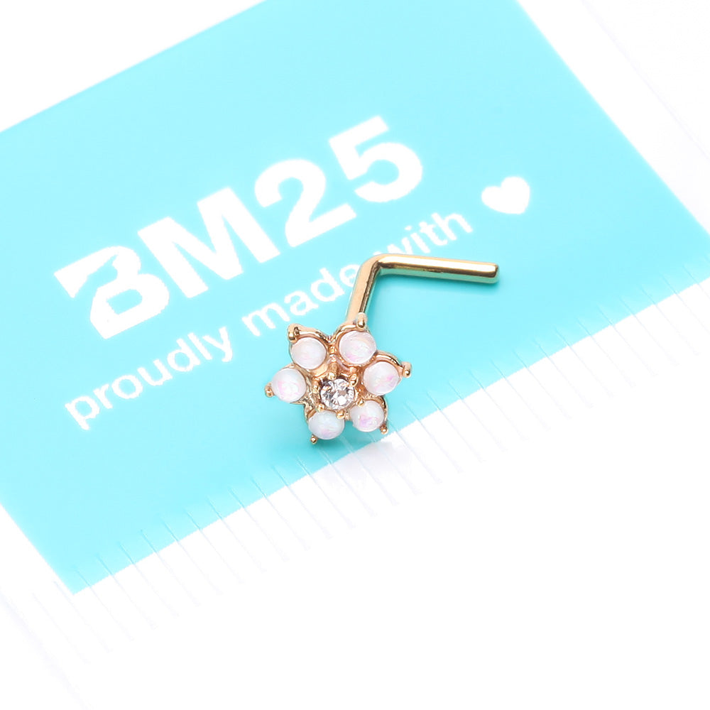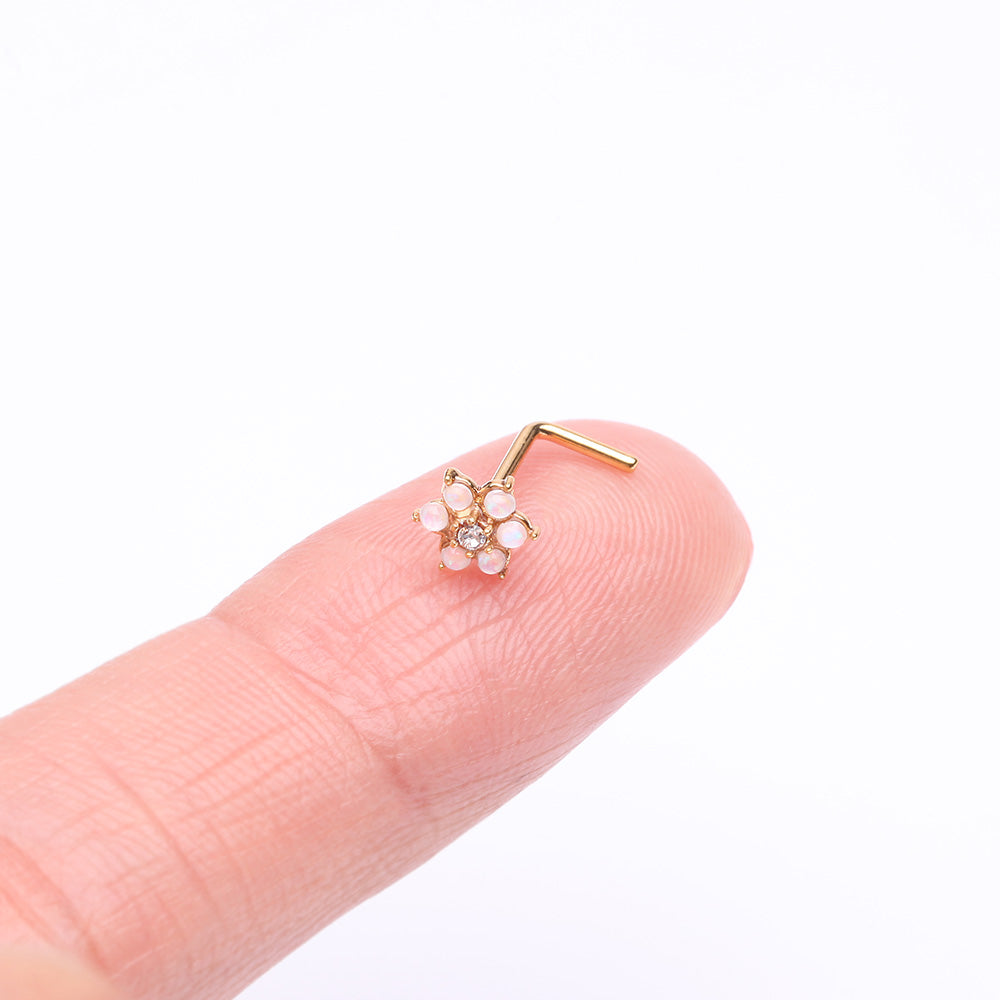 Golden Opalescent Spring Flower Sparkle L-Shaped Nose Ring