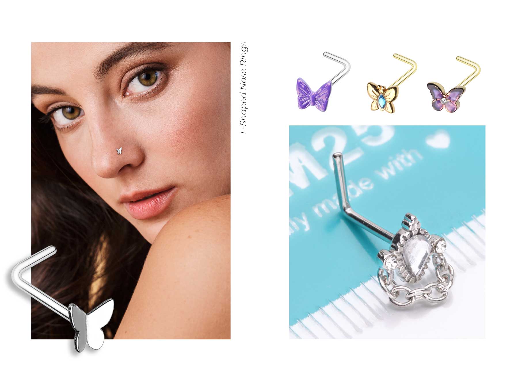 Our collection of L-shaped nose rings comes in a variety of styles, from simple and understated to bold and eye-catching. Whether you're looking for a classic stud or a unique diamond gemstone design, we have options to suit your style.