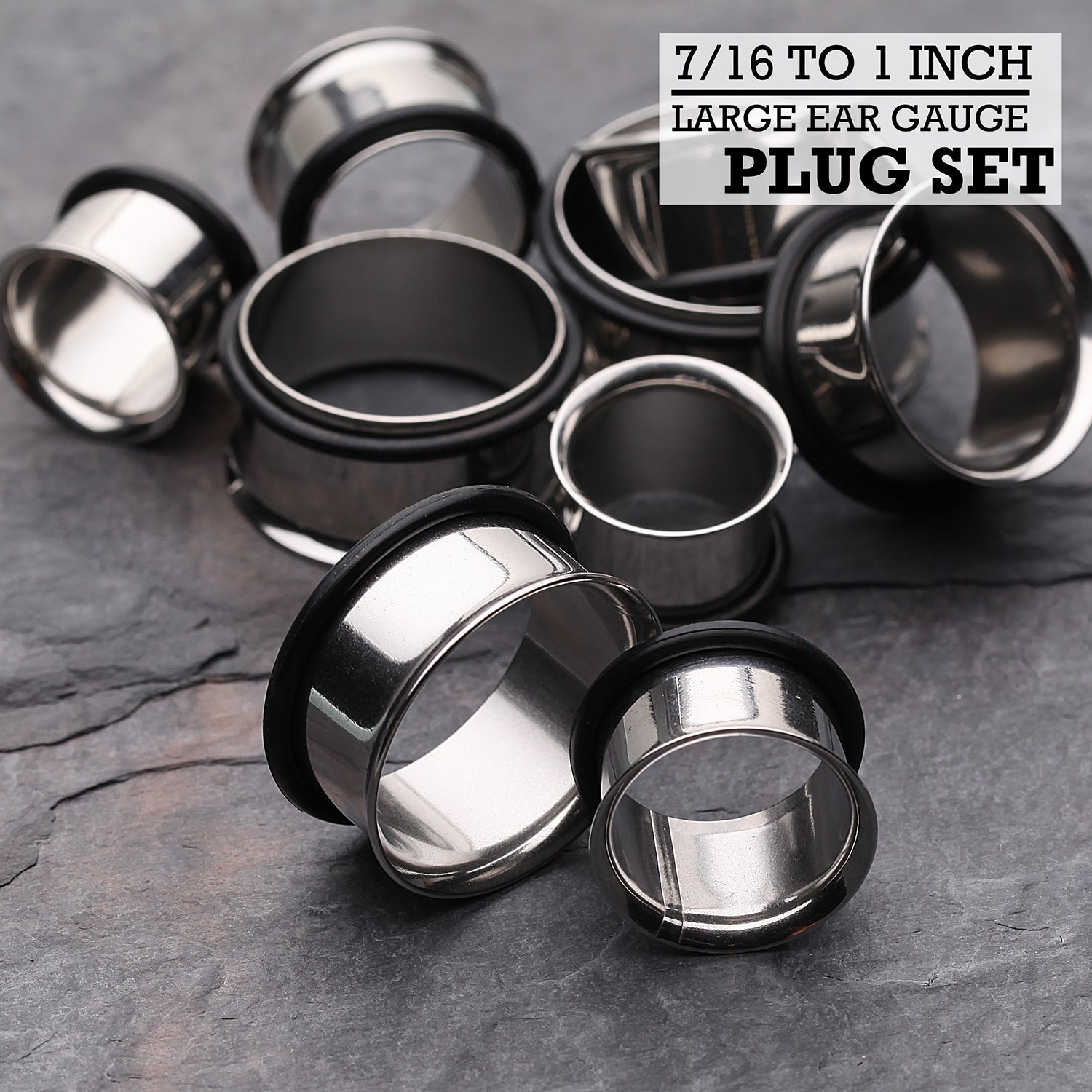 Stretch your style with our Single Flared Steel Ear Gauge Plug Set! Ranging from 7/16" to 1 inch, this set is perfect for ear stretching and adding a unique touch to your look. Made of durable steel, these plugs are both fashionable and functional. (Warning: may cause slight ear envy!)