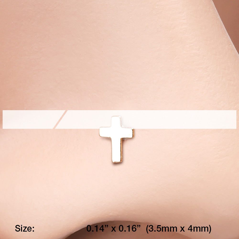 Golden Dainty Cross Icon Nose Stud Ring