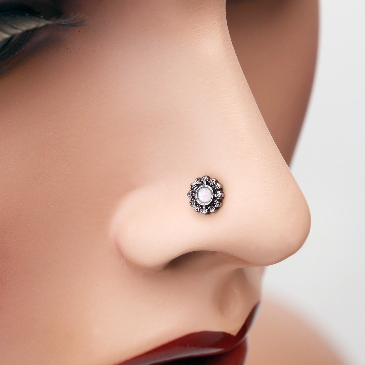 Ornate Filigree Opal Sparkle Nose Stud Ring