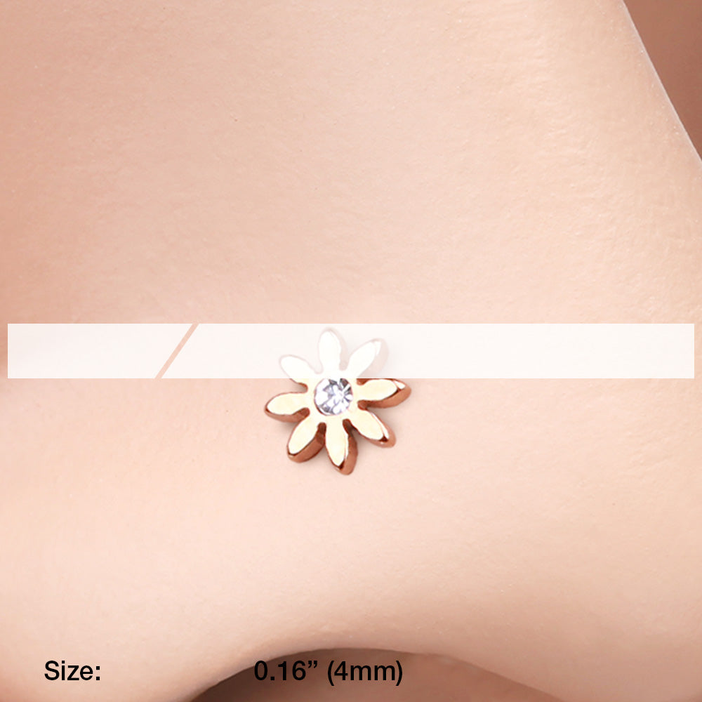 Rose Gold Cutesy Daisy Flower Sparkle Nose Stud Ring