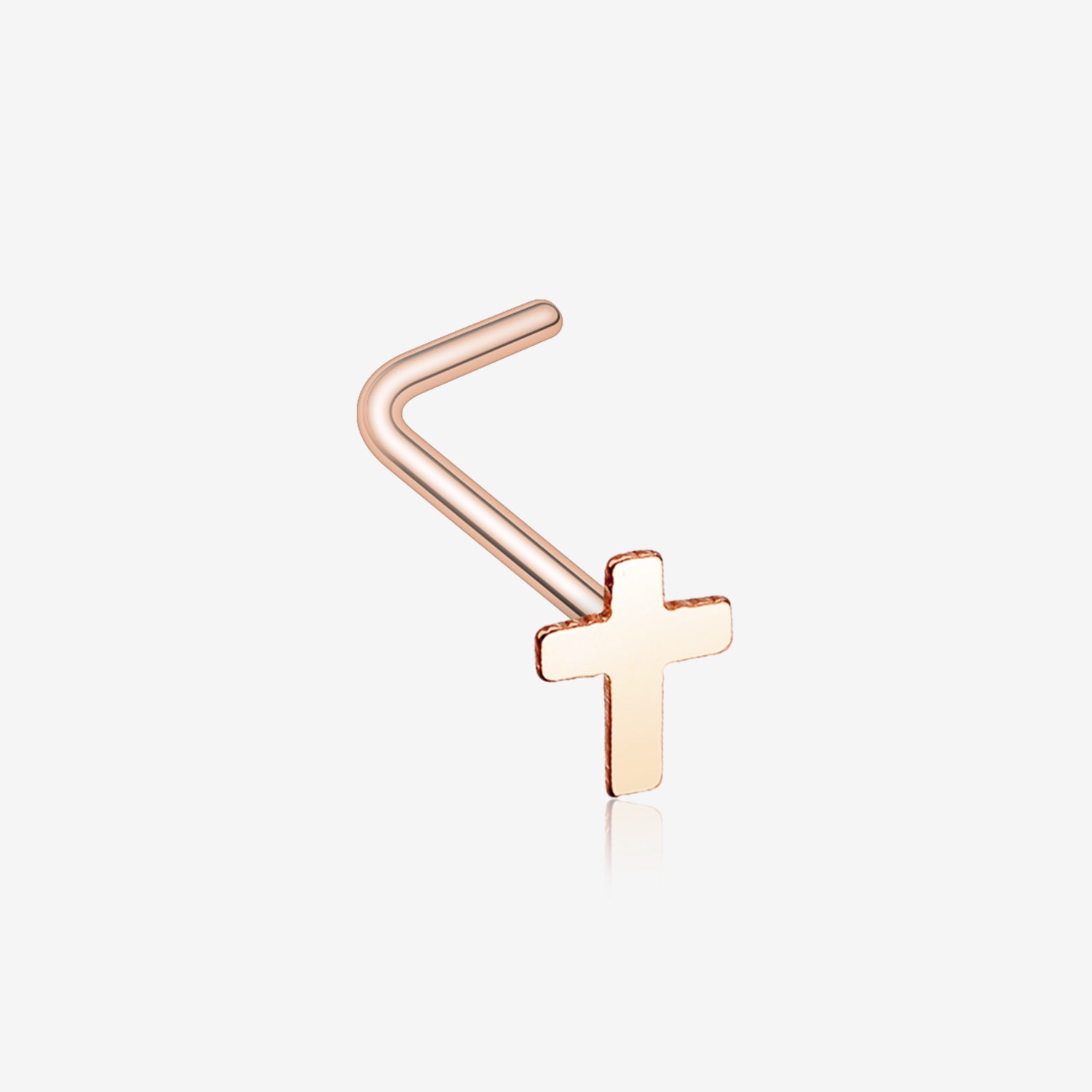 Rose Gold Dainty Cross Icon L-Shaped Nose Ring