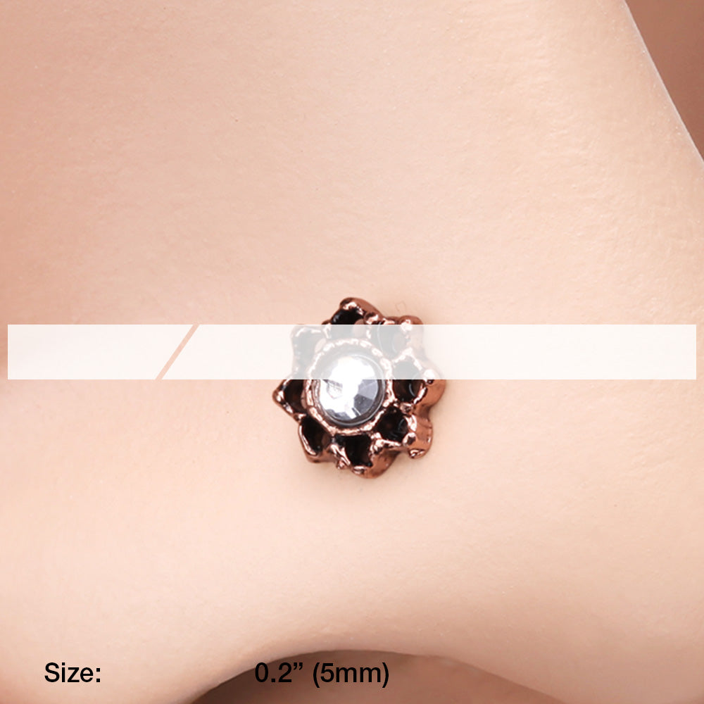 Rose Gold Lotus Filigree Sparkle Icon L-Shaped Nose Ring