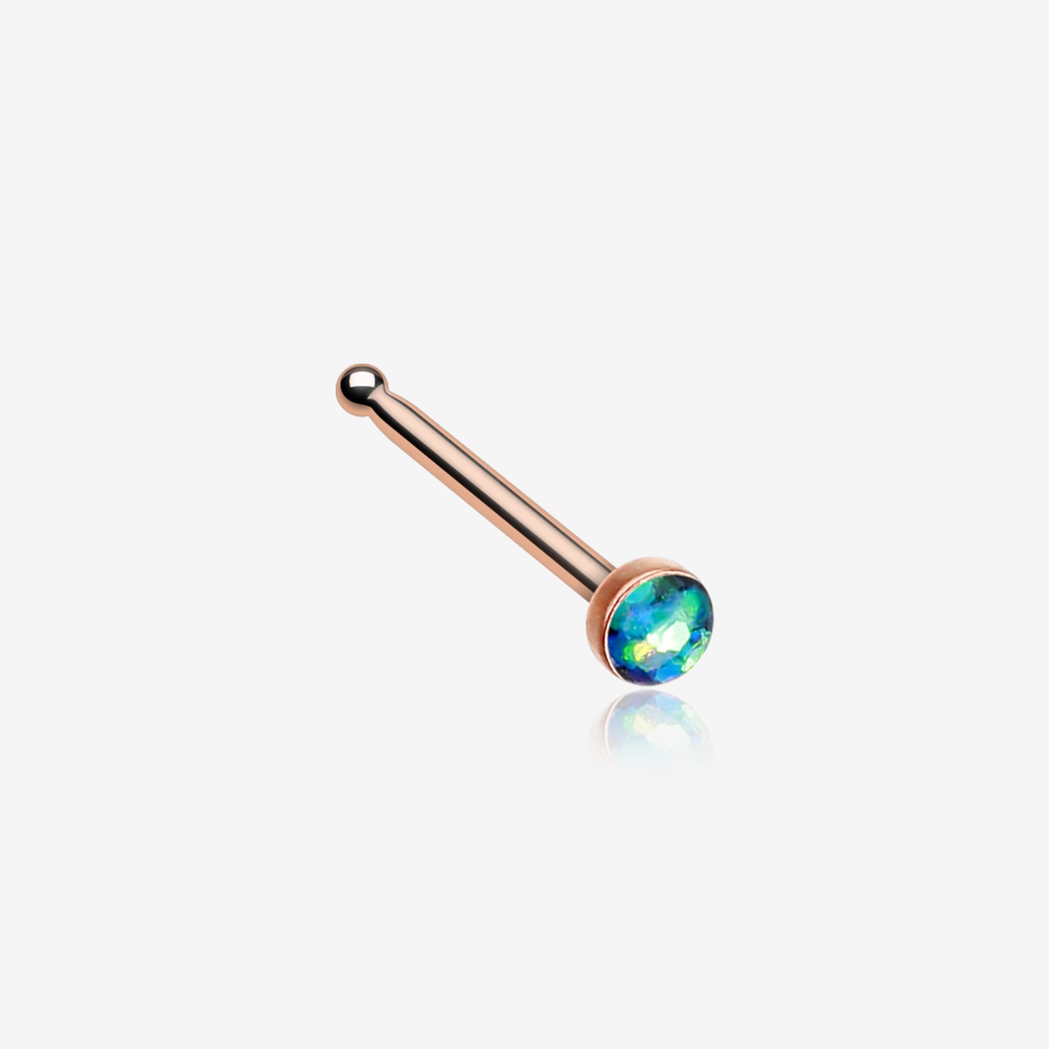 Elevate your style with our Rose Gold Opal Sparkle Nose Stud Ring! The stunning opal stone and rose gold finish add a touch of elegance and sparkle to your everyday look. Upgrade your nose jewelry game and let your inner beauty shine through with this gorgeous stud.