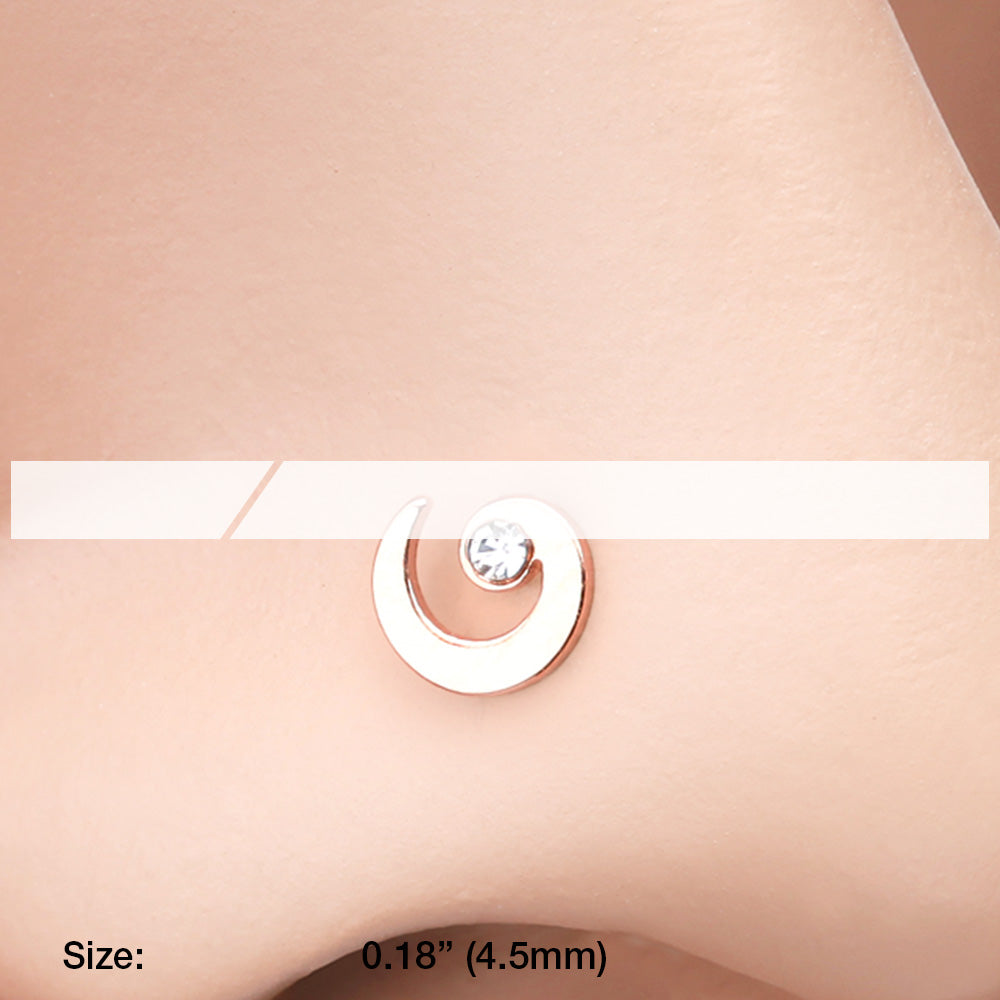 Rose Gold Spiral Swirl Sparkle L-Shaped Nose Ring