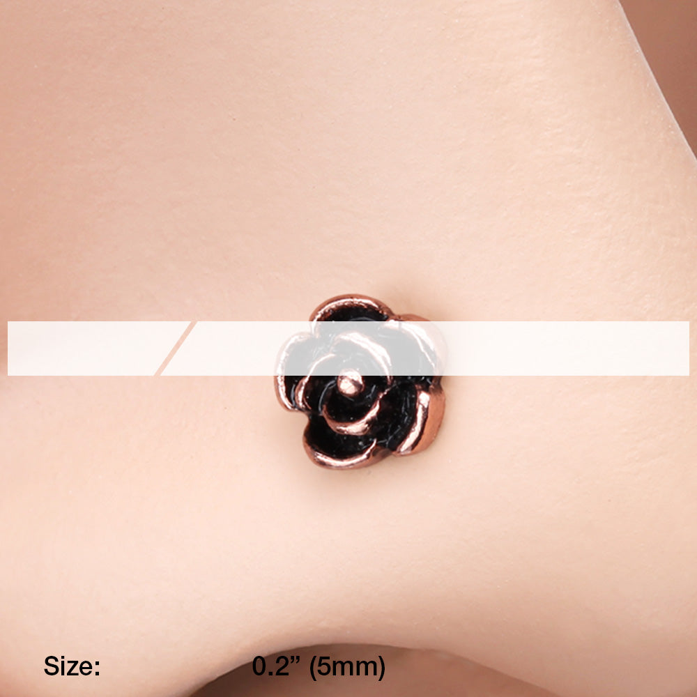 Rose Gold Vintage Rose Icon L-Shaped Nose Ring