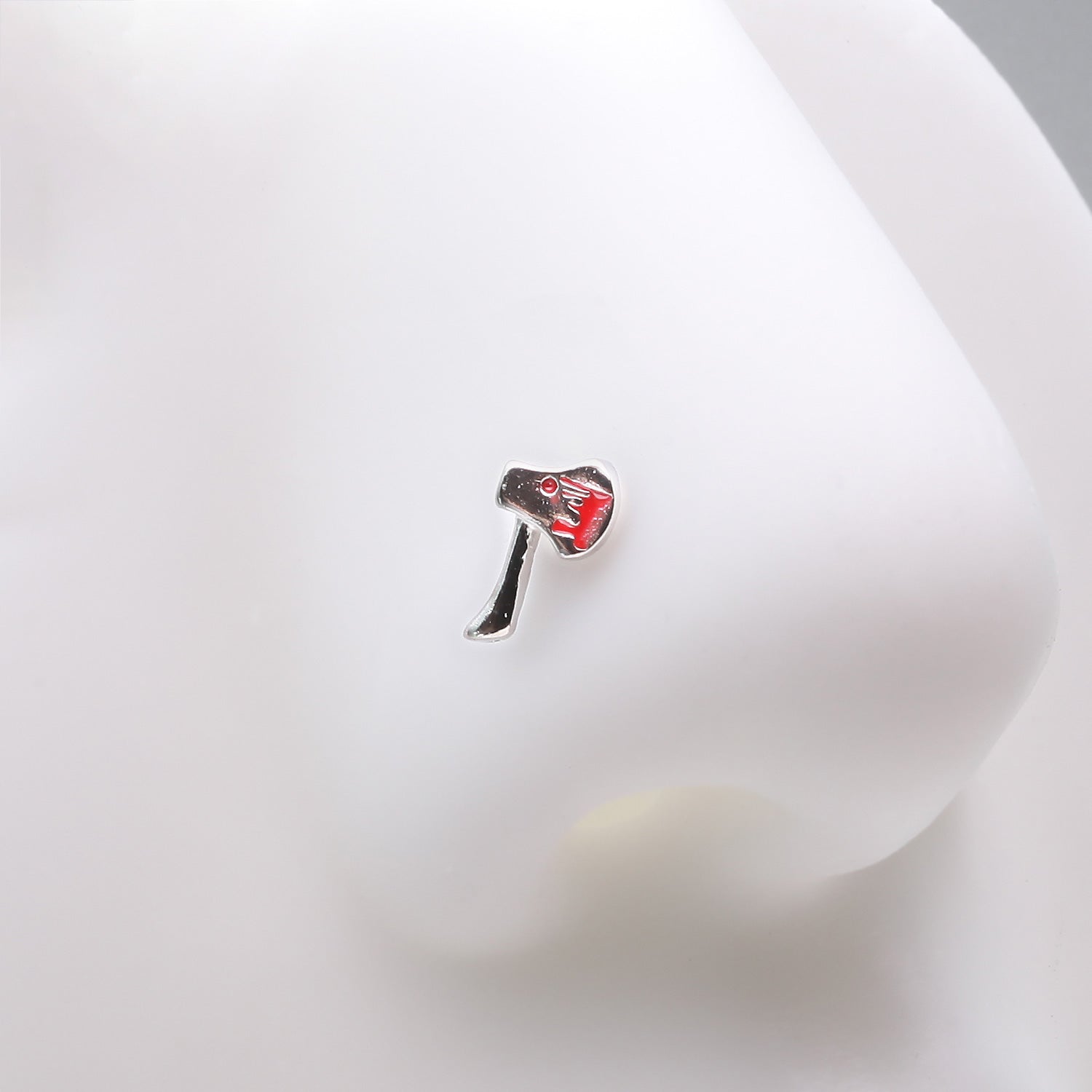This nose stud ring is the perfect accessory for horror lovers. With a unique and intriguing design of a bloody hatchet axe, it adds a touch of edginess and boldness to any piercing. Show off your passion for the genre with this must-have piece.