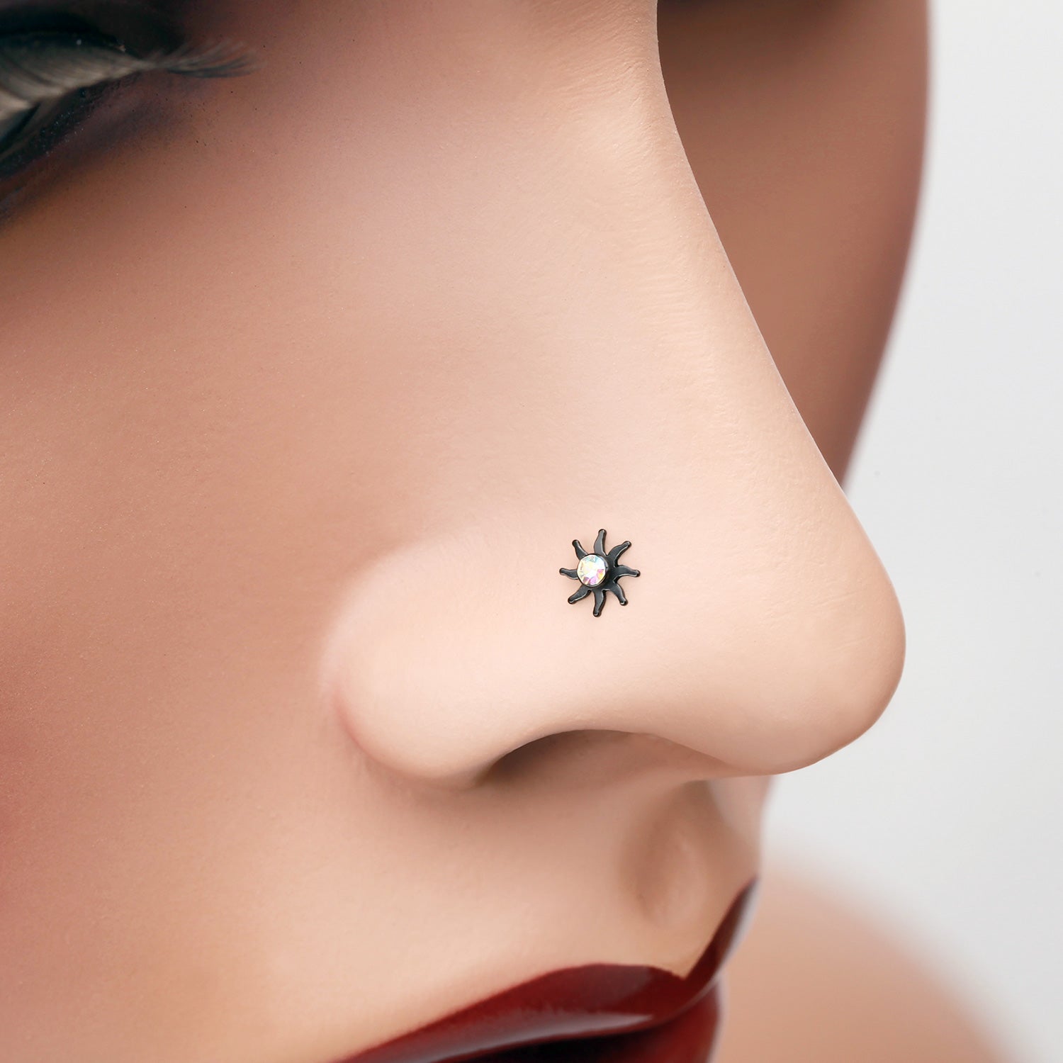 Transform your look with our Colorline Blazing Sun Sparkle Nose Stud Ring! This stunning piece features a blazing sun design, adding a touch of sparkle to your nose. Crafted with high-quality materials, it's built to last and is sure to elevate your style. Upgrade your nose jewelry collection today!