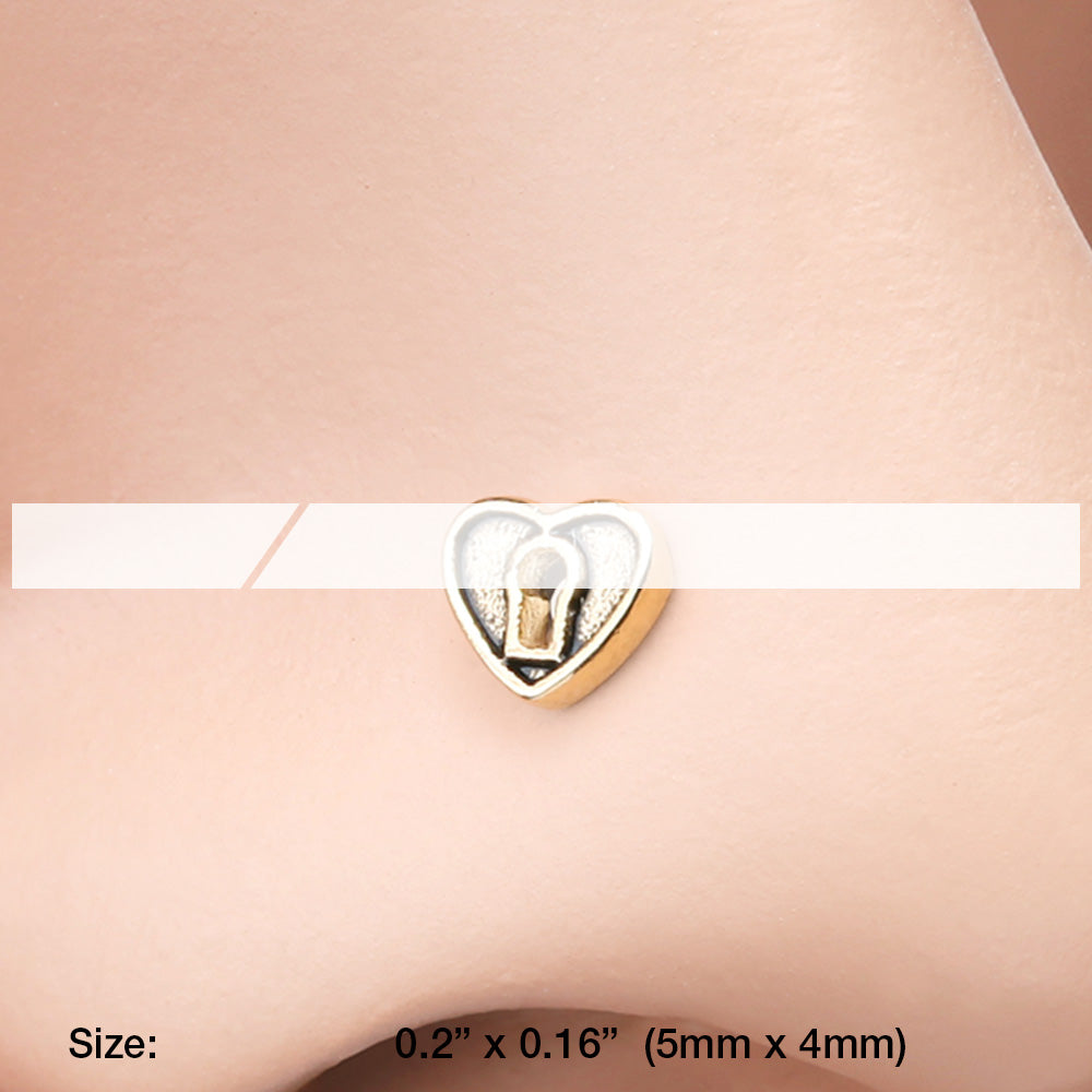 Golden Antique Heart Lock Nose Stud Ring