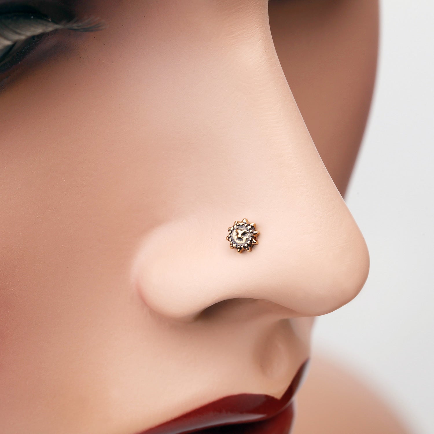 Golden Antique Mythical Sun Face Nose Stud Ring