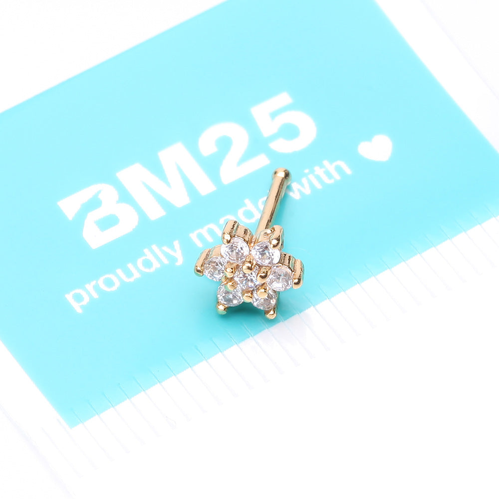 Golden Brilliant Sparkle Spring Flower Multi-Gem Nose Stud Ring