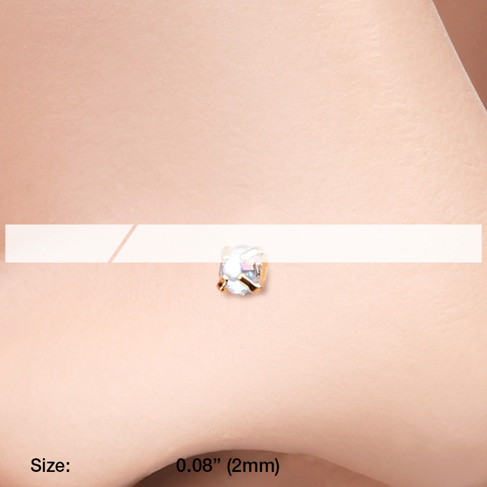 Golden Iridescent Sparkle Gem Prong Set Nose Stud Ring