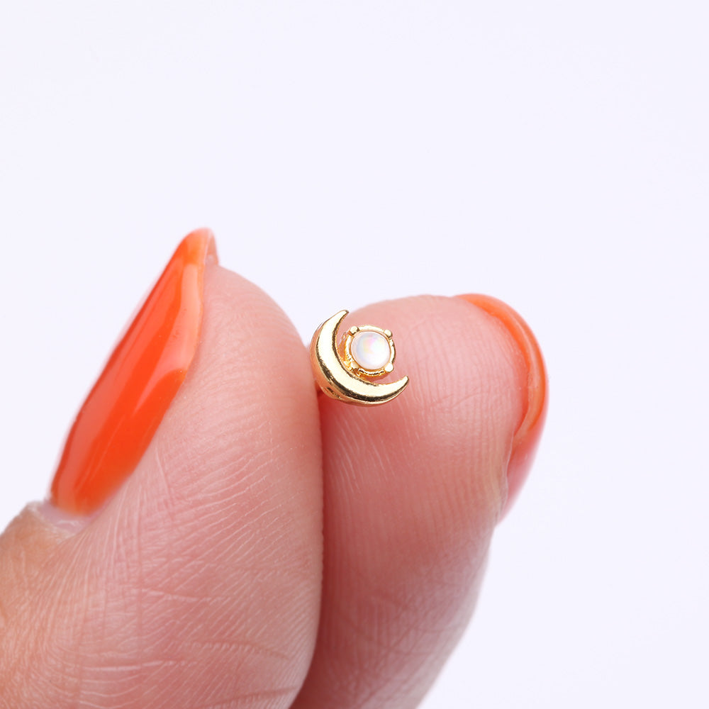 Embrace your inner goddess with our stunning Golden Opalescent Crescent Moon Nose Stud Ring. Crafted with a shimmering golden opal and delicate crescent moon design, this nose stud will effortlessly elevate your look. Shine bright and feel empowered with this unique and stylish piece.