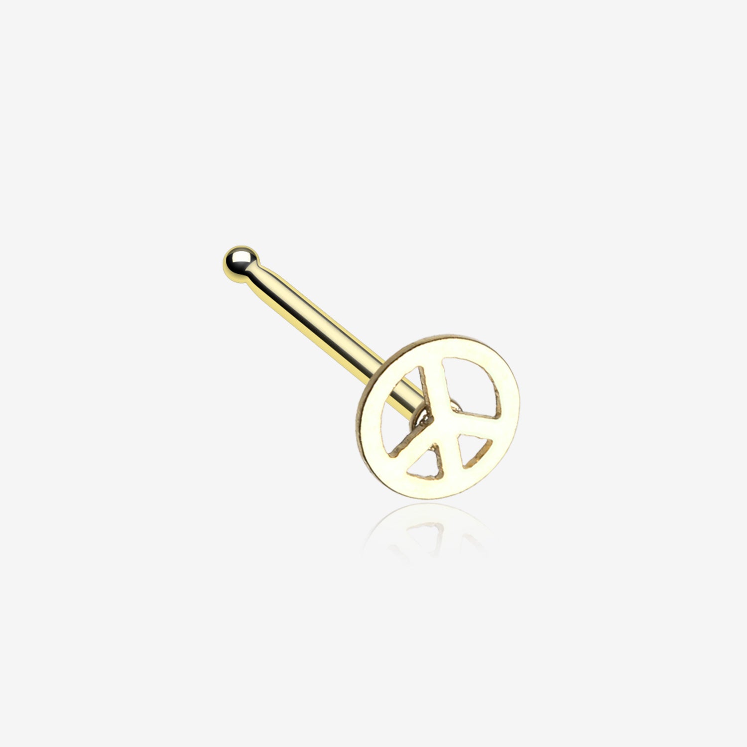 Experience ultimate peace and tranquility with our Golden Peace Icon Nose Stud Ring. This stunning piece not only adds a touch of elegance to your appearance, but also serves as a constant reminder to radiate positivity and harmony. Crafted with utmost precision, it's the perfect addition to your accessory collection.