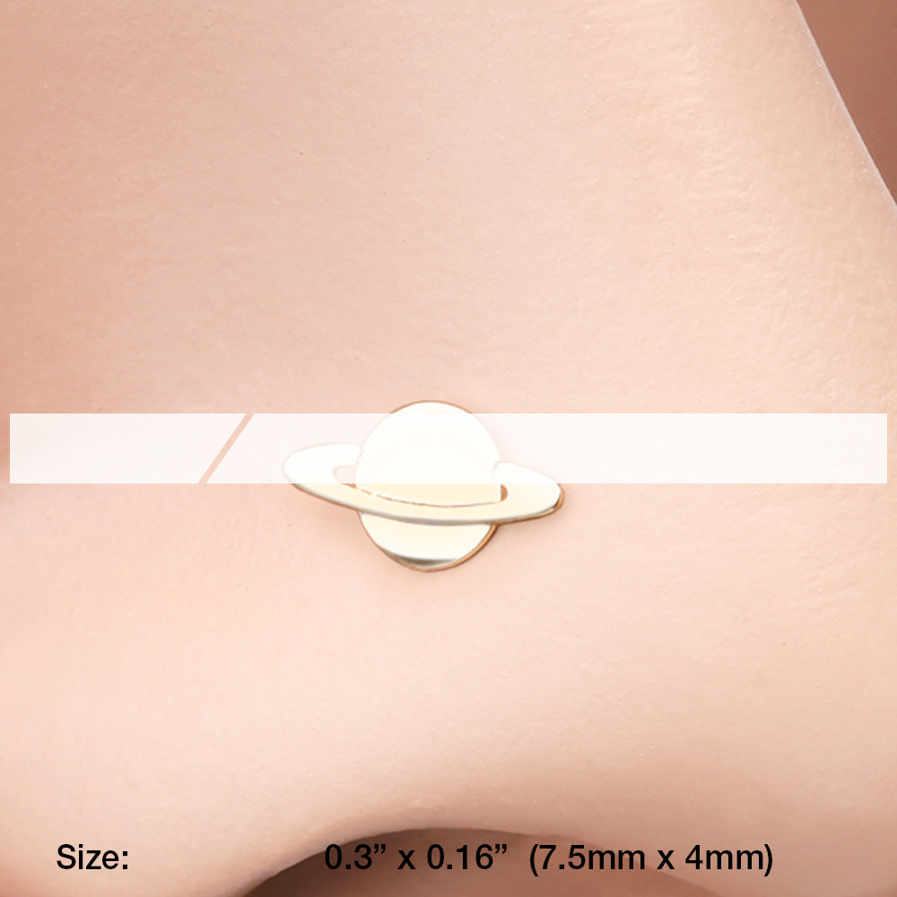 Unleash your inner celestial beauty with our Golden Saturn Planet Nose Stud Ring! Made of high-quality materials, this nose stud features a stunning golden Saturn planet design that will add a unique touch to your look. Elevate your style and embrace your love for the universe with this eye-catching accessory.