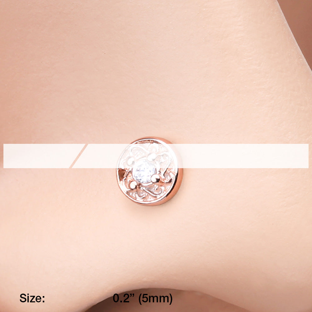 Rose Gold Swirlesque Sparkle Gem Nose Stud Ring