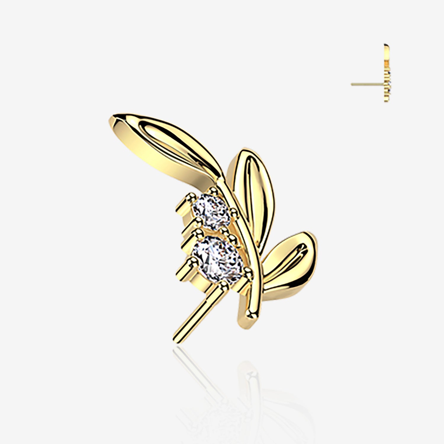 14 Karat Gold OneFit Threadless Dainty Leaf Sparkle Top Part